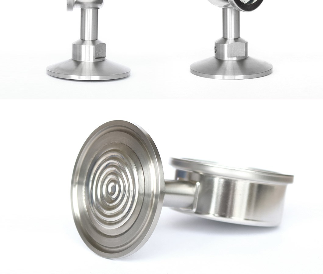 Alat pengukur jenis ini adalah alat pengukur tekanan diafragma sistemik, yang terdiri daripada tolok tekanan universal dan pengasing. Mudah dipasang dan dibongkar di tempat, lebih mudah membersihkan dan mencemarkannya. di duding selamat dan dapat diandalkan untuk digunakan, dan juga dapat memenuhi permintaan GMP dalam pembuatan farmasi yang digunakannya secara meluas dalam industri perubatan, yang memiliki permintaan untuk menjaga kebersihan dalam pemrosesan teknis